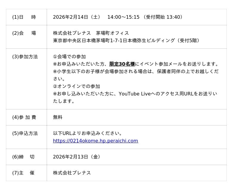 2026年2月14日(土)14時より 現地&YouTube Live配信