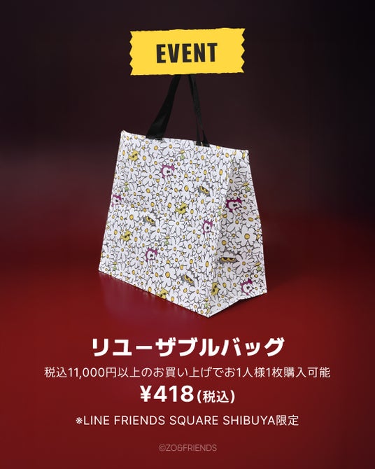 渋谷ストアPOP-UP会場にて税込11,000円以上のお買い上げでリユーザブルバッグ1枚を税込418円でご購入いただけます。