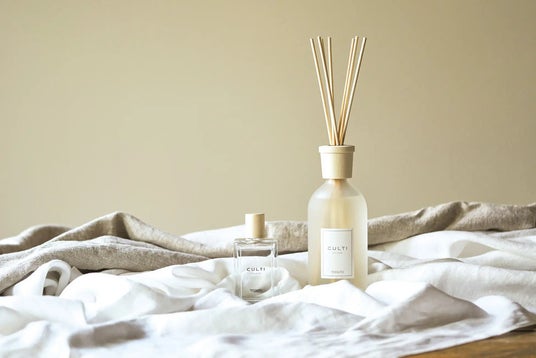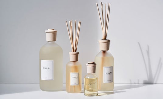 ルームディフューザーCULTIの代名詞ともいえる、ウッドスティック式のルームディフューザーは、ボトルデザインが異なる、STYLEとDECORの2シリーズをご用意。植物から抽出したエッセンシャルオイルを含んだリキッドを、細長いラタンスティックが吸い上げて空気中に拡散させます。お部屋の中で香りを楽しみながら贅沢な時間をお過ごしいただけます。