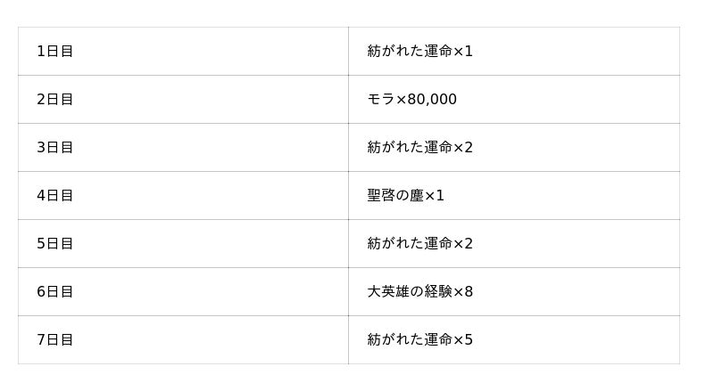 イベント期間中、累計7日間ログインすると、紡がれた運命×10個などの報酬を獲得可能!