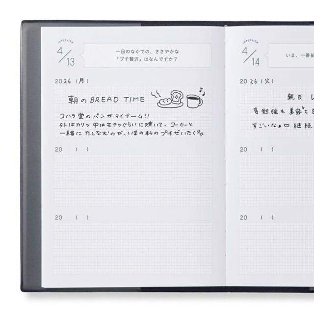 インタビュー形式の3年連用日記で、質問に答えていくだけで今の自分を記録できるというもの。