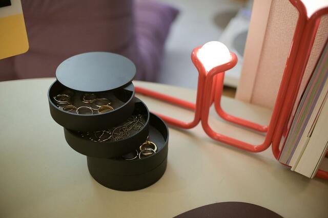 私は前者派で、上からリング、ネックレス、イヤリング、ピアスに分けて収納。今までは全部を一緒くたにして平置きしていたので、しまうだけで、何だか見違えたようにスッキリしました!