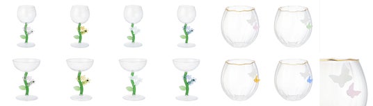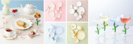 お花や蝶の立体モチーフがフォトジェニックなグラスウェアです。ガラスティーシリーズ、セラミックと組み合わせて、お花畑のような華やかで春らしいテーブルコーディネートが楽しめます。