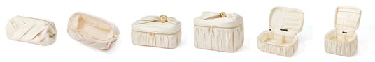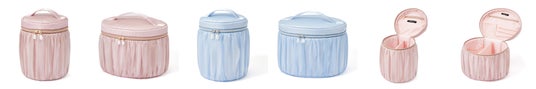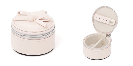 チャーム付きで持ち運べる、ミニサイズのジュエリーボックスです。内側にはスエード調の生地をあしらい、大切なアクセサリーをやさしく包み込みながら美しく保護します。バッグに取り付けられるため、旅行やジム、仕事中など、外出先で一時的にジュエリーを外すシーンにもスマートに対応できます。