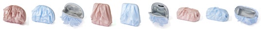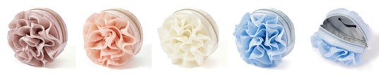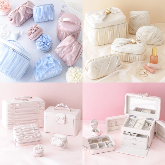 ひらひらとしたオーガンジーのフリルで花を表現した、春らしさあふれるポーチシリーズです。光沢感と透け感のある素材がみずみずしく春らしい印象を与えます。ミニポーチは花のコサージュをそのまま形にしたようなデザイン。リップや目薬、外したジュエリーなどの収納に適したサイズ感で、日常使いにも便利です。Sサイズはコンパクトで持ち運びやすく、スタンド型は自立するため中身の出し入れもスムーズ。ワイヤーポーチやバニティタイプは大容量で、コスメをたっぷり収納したい方にもおすすめです。