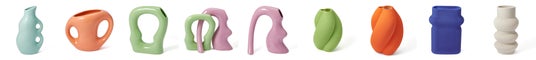 アーティスティックなフォルムが目を引く、セラミック製のフラワーベースです。花を活けるフラワーベースとしてはもちろん、異なる形状を組み合わせてオブジェのように飾ることで、空間に洗練されたリズムと奥行きをもたらします。