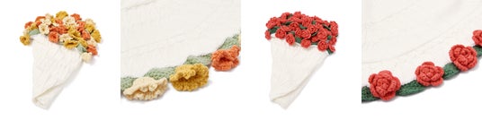 くるくると丸めると花束のようになるかぎ編みスローです。お花は一輪一輪を丁寧に手編みし、花びらのフォルムにこだわりました。スローとしてはもちろん、使用しない時は大きめのバスケットや花瓶に入れて、インテリアとして飾るのもおすすめです。ギフトにも喜ばれるアイテムです。