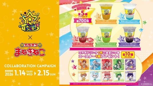 株式会社VOISING(本社:東京都港区、代表者:ないこ、以下、VOISING)所属の2.5次元アイドルグループ「すたぽら」が、全国展開するカラオケチェーン「カラオケまねきねこ」とのコラボレーションイベントを、2026年1月14日(水)から2月15日(日)までの期間限定で開催することが決定いたしました。本コラボは、2026年1月31日(土)に神奈川・パシフィコ横浜 国立大ホールにて開催される、すたぽら自身初となるホールワンマンライブ『StarLight PolaRis One Man Live in パシフィコ横浜 Sirius / Orion』に向けた特別企画となっております。
