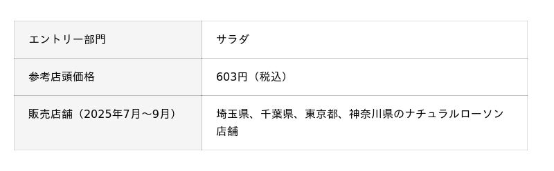 2025年7月から9月にかけて、関東地区のナチュラルローソンで販売し、健康志向の女性を中心に、暑い夏の時期でもさっぱりと食べられる商品としてご好評いただきました。今後も季節に合わせた魅力ある商品の提案を続けてまいります。