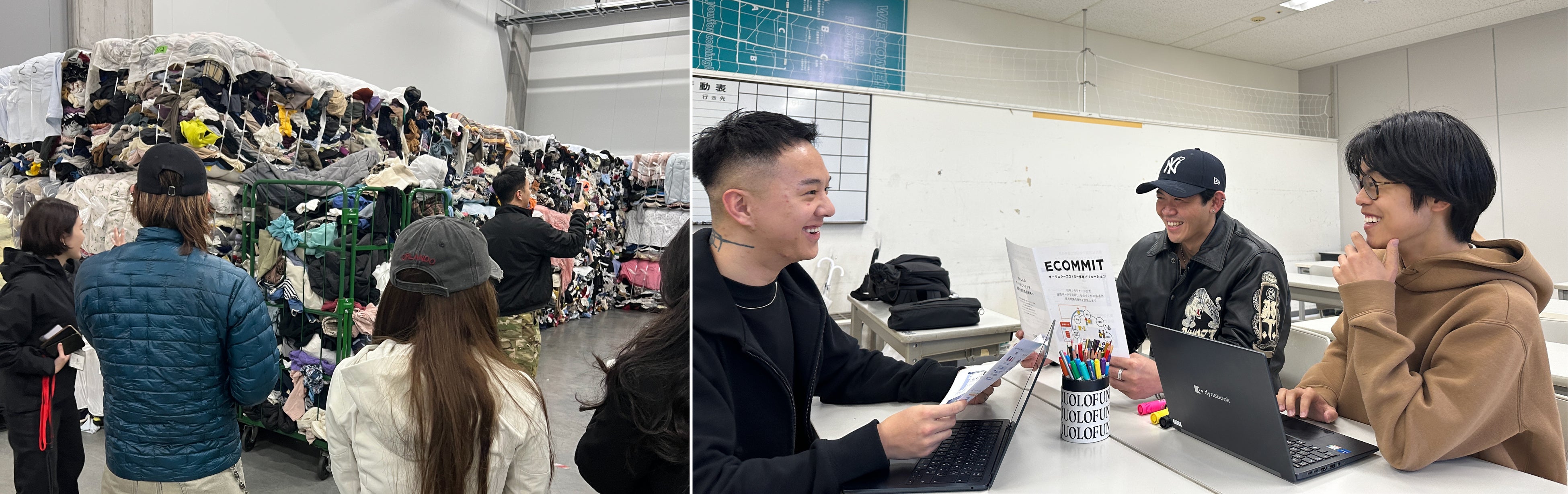 本授業は、株式会社ECOMMIT、CANARI株式会社との産学連携により実施され、学生は実在する企業課題に向き合いながら学びを深めました。取り組みの中でファッション産業が抱える構造的課題への理解を深めるとともに、ECOMMIT 東京サーキュラーセンターの見学を通じて、循環型社会の現場を体感しました。