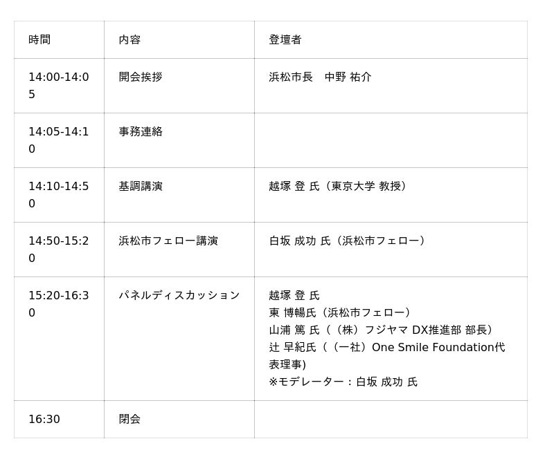 各分野の専門家にご登壇いただき、「官民連携で実現するデジタル・スマートシティ浜松」をテーマに、デジタルを活用したまちづくりの可能性を探ります。