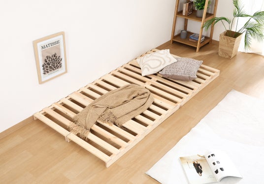 圧迫感のない低めデザインで空間がすっきり。シングル・セミダブル・ダブルの3サイズから選べ、ひとりでもふたりでも快適に使えます。パレット状のすのこ構造で通気性がよく、湿気やカビを防いで一年中爽やか。天然木パイン材の香りと風合いが心地よい寝室をつくります。工具不要で簡単に設置でき、使わない時は重ねて収納できる、省スペース性も魅力です。