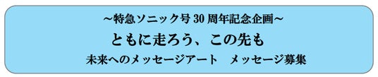 特急ソニック号は2025年4月20日に運行30周年という節目を迎えることができました。これまでのご愛顧に心より感謝いたします。この記念すべき節目を機に、これからも走り続ける特急ソニック号と、お客さま一人ひとりの未来への想いを重ね合わせたアート作品を制作いたします。