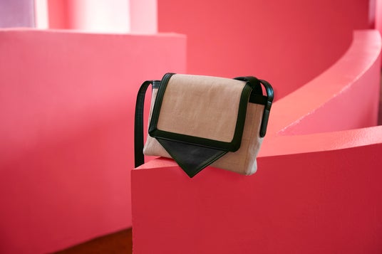 麻の中でも光沢感のあるリトアニア産のリネンを使用し、牛革と組み合わせました。