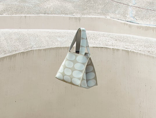 1枚仕立てで軽やかに仕上げました。楕円の模様はイタリアの工事現場で仮囲いとして使われるオレンジ色のフェンスをモチーフにしています。