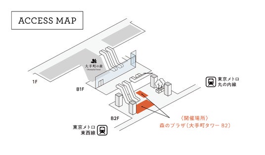 商業ゾーン「OOTEMORI」は、施設内に東京メトロ東西線と丸ノ内線の連絡通路を有するなど、地下鉄5路線が乗り入れる大手町駅の地下ネットワークの中心に位置しています。高さ15mの吹抜け空間を通じ地上の「大手町の森」からの自然光が差し込む、地下とは思えない森の中にあるような安らぎを感じていただける施設環境「森のプラザ」を整備しており、周辺エリアで働く方々にオン・オフの利用シーンを問わず便利で憩える場を提供しています。
