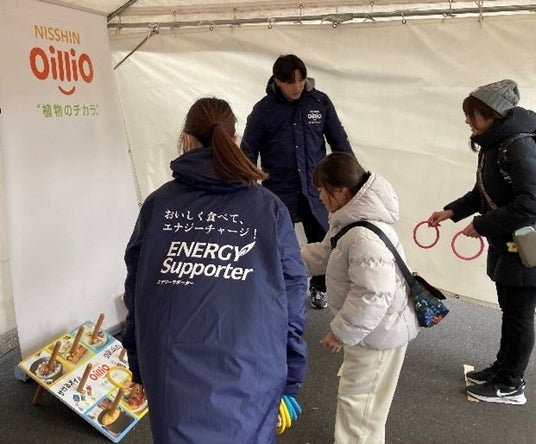 全国大会ではブースも出展。応援のエネルギーをチャージしていただく「日清かけて香る純正ごま油」をかけた温かいとん汁の提供や、当社商品が当たるゲームの実施、キャプテン翼のキャラクターと写真撮影が出来るARフォトフレームの提供などを通じて、大会の盛り上げに貢献しました。