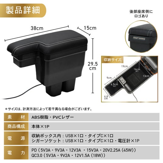 充電設備を完備収納ボックス内:USB × 1口・タイプC × 1口
