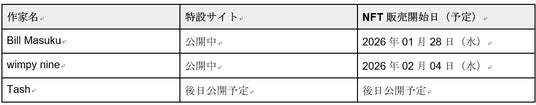 2026年1月28日(水)より、3名の作家によるNFT販売を順次開始いたします。