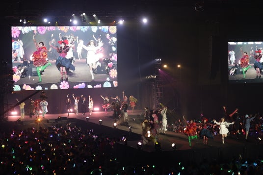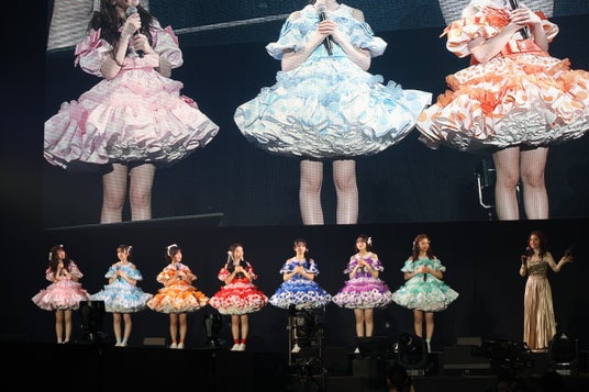 『CHU CHU CHU研究中!』もヤマモトショウ氏の提供楽曲。月足天音(FRUITS ZIPPER)は「こんなにすてきな衣装で歌えて、本日限りのスペシャルなライブになったんじゃないかなと思います」と、4グループ全員でのパフォーマンスを振り返りました。