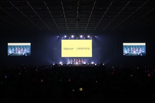 CANDY TUNEがコラボレーションするBCLカンパニーの「サボリーノ」は、忙しい毎日を過ごす方のために「がんばらなくても いいジブン」をコンセプトに展開するタイパコスメブランド。今回のコラボステージでは、プロモーション動画などで使用されている楽曲「アイしちゃってます(ハート)」をパフォーマンス。着用している衣装について、立花琴未が「CMにあわせて作ってもらった衣装です。皆さん、かわいいですか?」と尋ねると会場からは大きな「かわいい!」の声が。さらに、「皆さんと一緒にTikTokを撮影したい」という村川緋杏の声で「アイしちゃってます(ハート)」のサビを会場の皆さんと一緒にダンスし、にぎやかにステージを盛り上げました。
