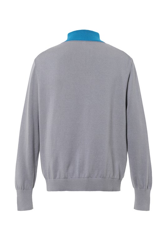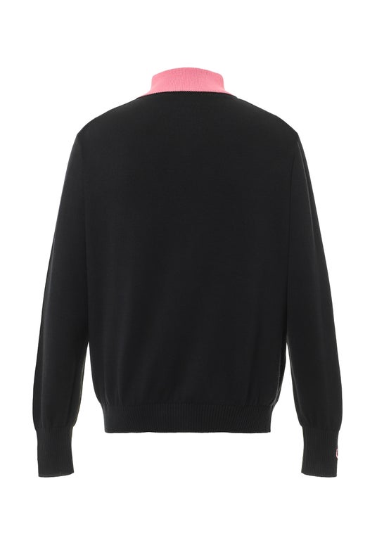 代わり、ブランドを象徴するジョッキーヘルメット型のシグネチャーボタンを採用。襟元をオープンにして着用すればクラシックなストリートウェアスタイルに、ボタンを留めてクローズにすればネック