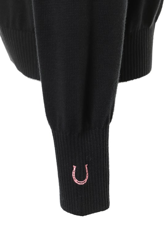 胸元にはCLロゴ、右手首には幸運を象徴する馬蹄刺繍を施し、上品で控えめな乗馬ディテールを取り