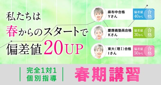 個人別カリキュラムでムリ・ムダなく弱点克服!新学期までに最難関校でも通用する基礎を確立しよう【開講日程】3/21(土)~4/4(土)
