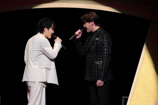メドレーは『SIX』(屋比久・sara・木下)でスタート。甲斐が代を超えて歌うことに胸熱になったという『デスノート THE MUSICAL』(三浦・甲斐)、『1789 -バスティーユの恋人たち-』(岡宮)、森崎がアーニャになる一幕もあったのが楽しい『SPY×FAMILY』(森崎)、『ビートルジュース』(平間)、『ヒーロー』(東)、『エリザベート』(甲斐・木下)、『ワイルド・グレイ』(平間)、『四月は君の嘘』(岡宮・屋比久)、『ボニー&クライド』(小林)、『梨泰院クラス』(sara)、『マタ・ハリ』(甲斐)、『バック・トゥ・ザ・フューチャー』(小林)、『マリー・キュリー』(木下)、『ウエイトレス』(森崎・屋比久)、『フランケンシュタイン』(三浦)、『二都物語』(屋比久)、そして、『ダンス・オブ・ヴァンパイア』フィナーレ曲(sara・東)から、東が盛り上げたいと思っていた『キンキーブーツ』の「Everybody Say Yeah」(全員)で本当に一気に会場の熱が上がり、共にカウントダウンの声を上げて、0時とともに「ハッピーニューイヤー」を叫んだ。