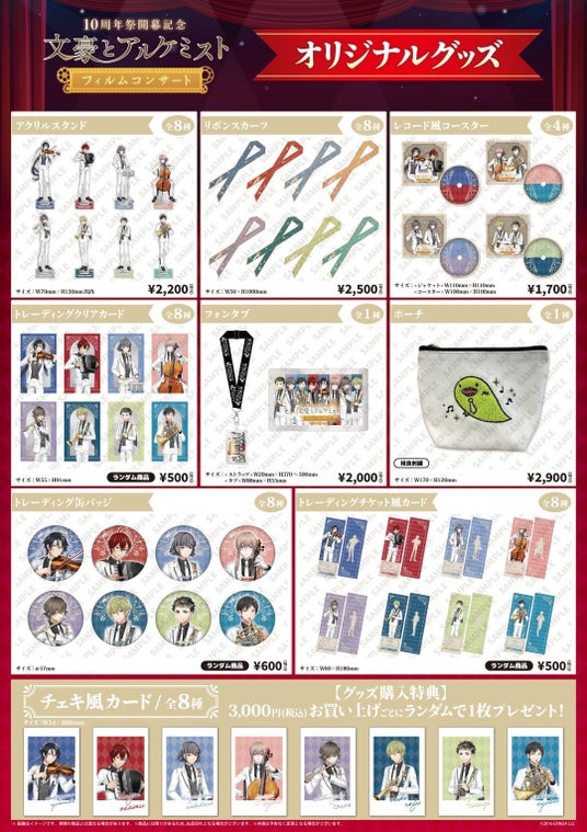 プロフェッショナル・エージェンシー事業を展開する株式会社クリーク・アンド・リバー社(以下C&R社)と株式会社KADOKAWA(以下 KADOKAWA)は、2026年2月1日(日)に開催する、近代日本文豪をキャラクター化した女性向け文豪転生シミュレーションゲーム『文豪とアルケミスト』(運営:C&R社)の10周年イヤー開幕記念オーケストラコンサート「文豪とアルケミスト フィルムコンサート」のグッズ情報を解禁いたしました。フィルムコンサートの開催にあわせ、本イベントならではの限定アイテムを多数用意しております。この機会にぜひお求めください。