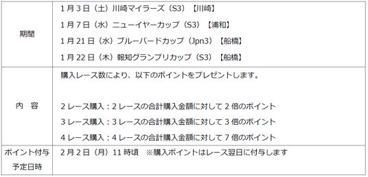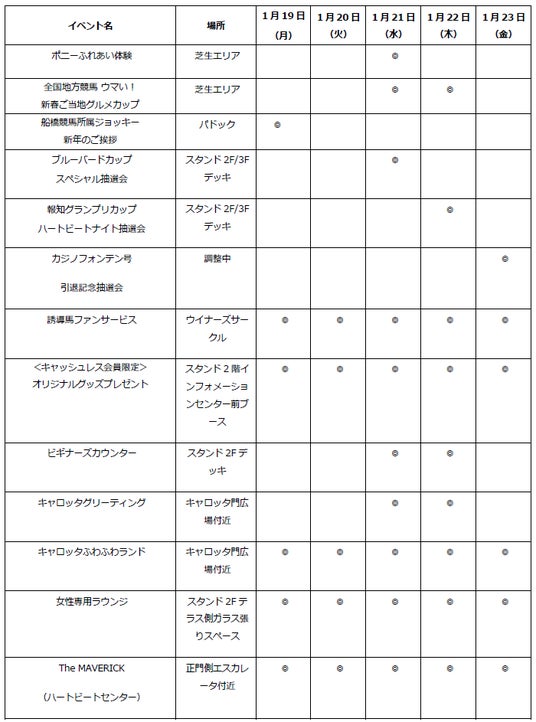 実施日:ブルーバードカップ スペシャル抽選会 1月21日(水)、報知グランプリカップ ハートビートナイト抽選会 1月22日(木)
