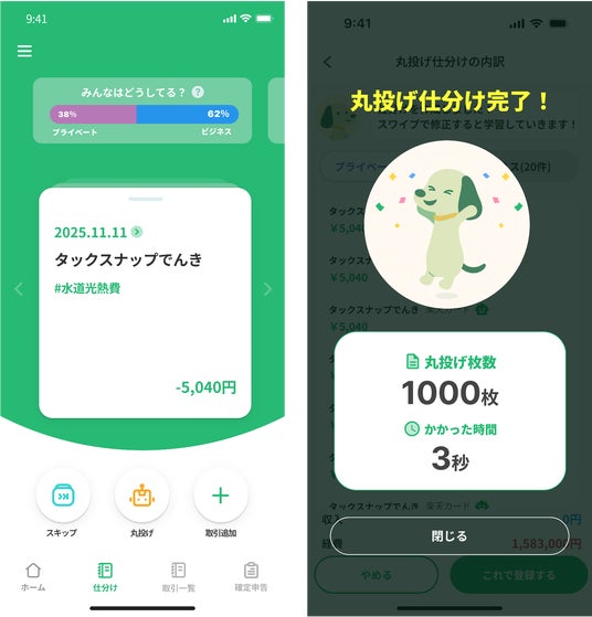 「スワイプ仕分け」や「丸投げ仕分け」機能で「頑張らなくていい確定申告」を体験!「とっても簡単」と驚く姿も