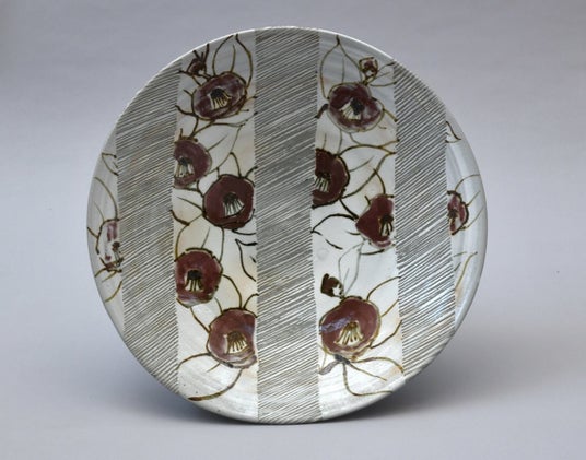 千葉市を拠点に活動をする神谷紀雄は、酸化鉄の文様と銅彩の焼成による彩色表現を行う「鉄絵銅彩」の技法で、身近にある植物を題材にした、彩り豊かな陶芸作品を創出します。神谷は益子焼窯元の家に生まれ、多摩美術大学で彫刻を学んだ後、人間国宝・田村耕一氏に師事し、日本伝統工芸展を中心に出品を重ねて、陶芸の道を進みます。千葉市に窯を築き、益子の土も使いながら、素材や技法にこだわった作陶を続けて、県内最大の公募展・千葉県美術展覧会(県展)にも毎年作品を発表し、現在では展覧会を運営する千葉県美術会の会長を務めるほか、県内の工芸作家を集めた伝統工芸陶葉会を主宰するなど、県内の美術活動の振興にも精力的に携わり、令和7年12月には、文化庁長官表彰を授彰しました。
