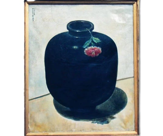 椿貞雄 《黒壺に椿一輪》 1948年、千葉県立美術館蔵
