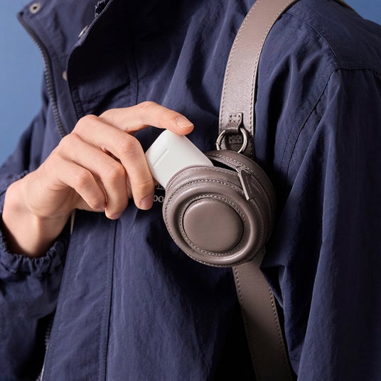 バックパックに実用性と遊び心をプラスする円筒形のポーチ