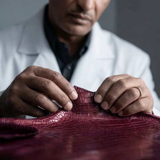 「RST17 - Magnetic Shield - Nubra Maroon」には、ナイルクロコダイルの本革を採用。特徴的な鱗模様と奥行きのある表情を持つ素材に、バーガンディ調のグラデーションを手作業で施しています。革本来の質感を活かした仕上げにより、力強さと上品さを併せ持つデザインに。こちらも天然素材の特性上、模様や色味には個体差があり、それぞれが唯一無二の存在です。