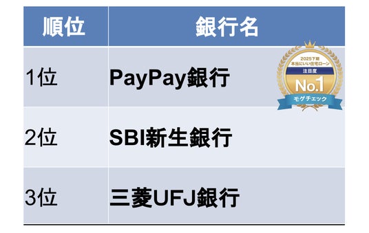 住宅ローン比較診断サービス「モゲチェック」を運営する株式会社MFS(本社:東京都千代田区、代表取締役CEO:中山田 明、以下「MFS」)は、モゲチェックユーザーを対象にアンケートを実施し、「ユーザーが選ぶ本当にいい住宅ローンランキング2025下期」(※)を集計しました。