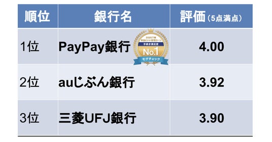 2位は三菱UFJ銀行です。 「事前審査が早い」という点に加え、メガバンクならではの「担当制」による手厚いフォローが光りました。3位にはauじぶん銀行がランクイン。 「ネットで完結する」という利便性がスピード感に直結しており、多くのユーザーから支持を集める結果となりました。