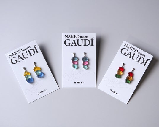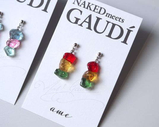 ガウディ建築の象徴的なモザイクタイルやレンガの色彩美を、リサイクルプラスチックで表現したアクセサリー。