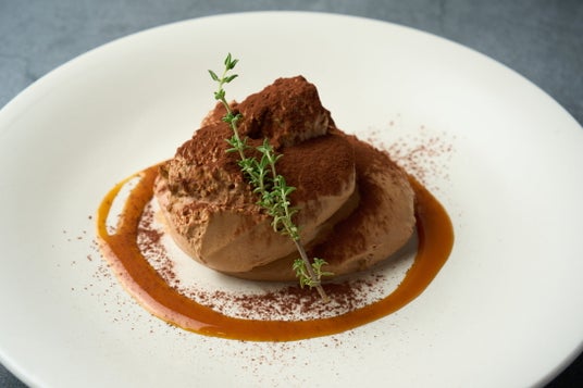 林檎とチョコレートのパフェ濃厚なチョコレートプリンと香ばしい黒ゴマアイスに、爽やかな酸味のパッションフルーツジュレと自家製りんごコンポートを重ねた、濃厚な甘みと清涼感のバランスが魅力のパフェ。