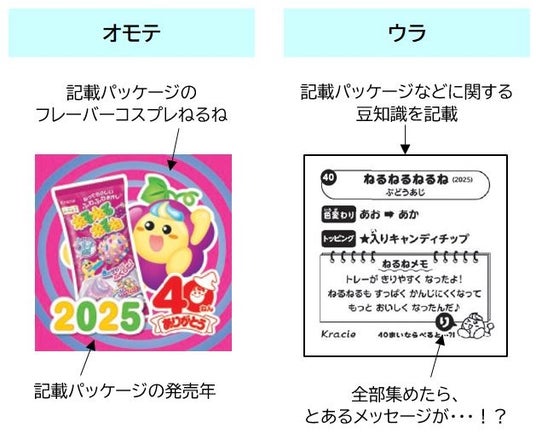 クラシエ株式会社(フーズカンパニー)は、1986年誕生のロングセラー商品「ねるねるねるね」の発売40周年を記念し、歴代パッケージデザインのキラキラシール入り「ねるねるねるね ぶどう味」「ねるねるねるね ソーダ味」を2026年2月16日(月)より全国のスーパーマーケット、ドラッグストア、コンビニエンスストアなどで数量限定発売いたします。
