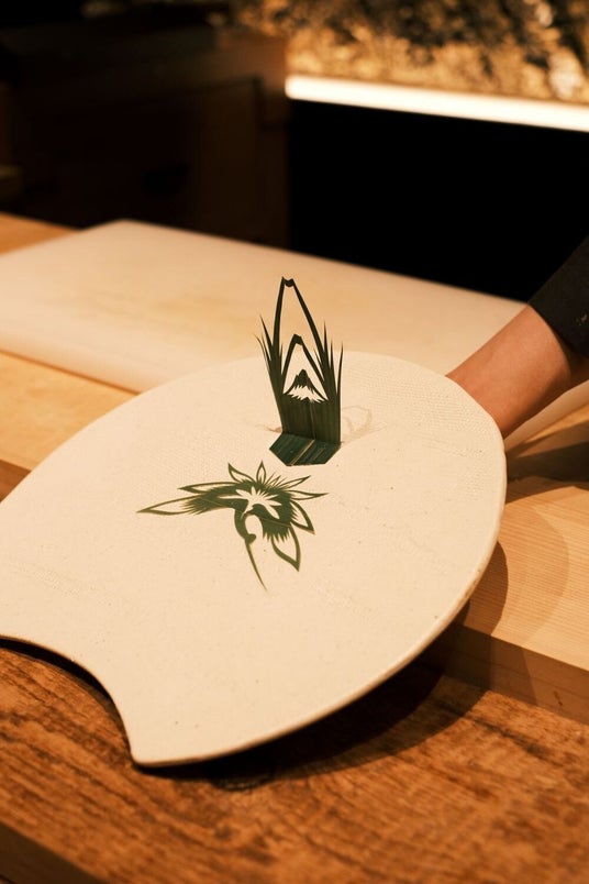 コース内容は、本物の職人さながらに作務衣を身にまとい、自分でにぎった寿司を実食するにぎり体験に加え、本わさびを擂って味わう体験や、職人の巧みな手技による包丁技術実演ショー、職人が寿司ネタに叩き、炙りを加え仕上げる料理の数々を目の前で楽しむ体験など、ライブ感溢れる多彩なプログラムをご用意。コースの最後には「認定証」を授与し、浮世絵コースターのお土産もお持ち帰りいただけます。