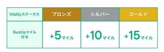 Vitalityステータスに応じて追加付与されるRuntripマイルは変動します