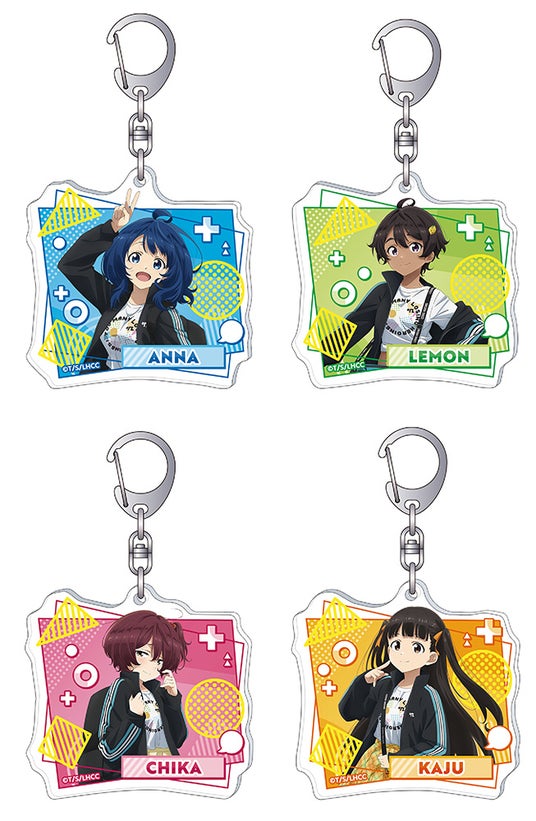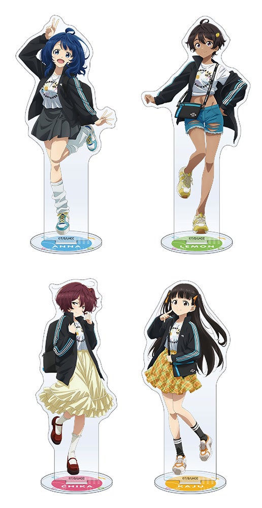 今回の「Space A la mode」商品には、「おでかけスタイル」をテーマにした描き下ろしイラストの八奈見杏菜、焼塩檸檬、小鞠知花、温水佳樹たちが着ているものとお揃いデザインの「ジャージ」、「Tシャツ」、「2WAYリュック」が登場いたします。さらに、描き下ろしイラストを使用した「アクリルスタンド」や「缶バッジセット」など、さまざまな商品をご用意しています。