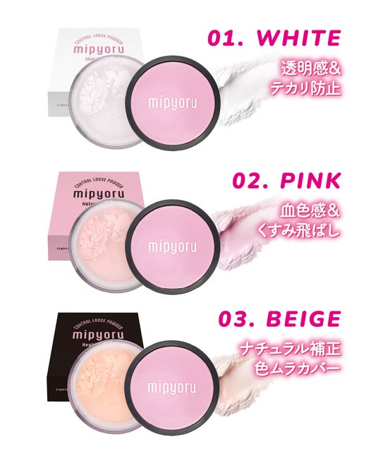 mipyoru(ミピョル)ルースパウダーカラー 01WHITE 02PINK 03BEIGE