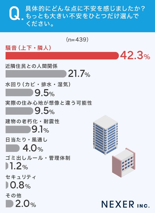 ■42.3%が、物件の「見えない部分」の不安は「騒音(上下・隣人)」と回答
