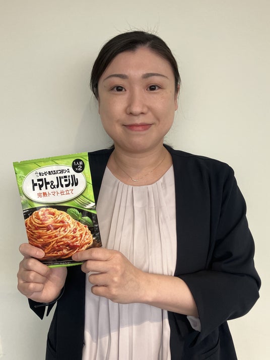 中でもトマトフレーバーはミートソースに次ぐ人気の味種で、ソースの種類も多く、お客さまの好みも細分化しています。そこで、トマトフレーバーが好きな方にさらに楽しんでいただきたいという思いで、トマトとの相性がよく、バジルの爽やかさを感じられる「トマト&バジル 完熟トマト仕立て」を開発しました。