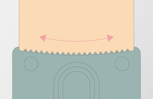 テープの残量にあわせて握る厚みを調整できる本体と、本体内側の立体カーブ形状で、テープの使い始めから終わりまで握りやすさをキープします。また、カット時に本体を握り込むと、内側の凹凸がテープをロックし、狙った位置でしっかりとカットできます。