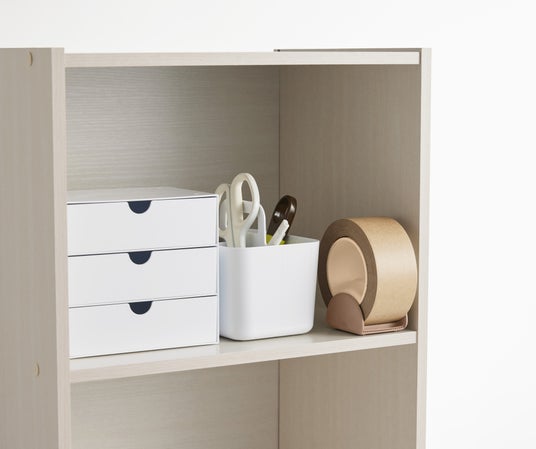 本製品はカッターの部分を下にして立てて置ける形状で、幅をとらずに収納が可能。ホコリも付きにくく、テープをキレイに保てます。切れ味と安心を両立した設計の刃によって、狙った位置で楽々カットでき、快適な梱包作業を実現します。玄関やリビングなど生活空間になじむ落ち着いたカラーリングで、いつでもサッと手に取って使えます。