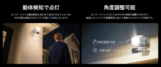 カメラとセンサーライトを1台に集約することで、設置の手間を抑えながら夜間の防犯対策を効率的に行えます。